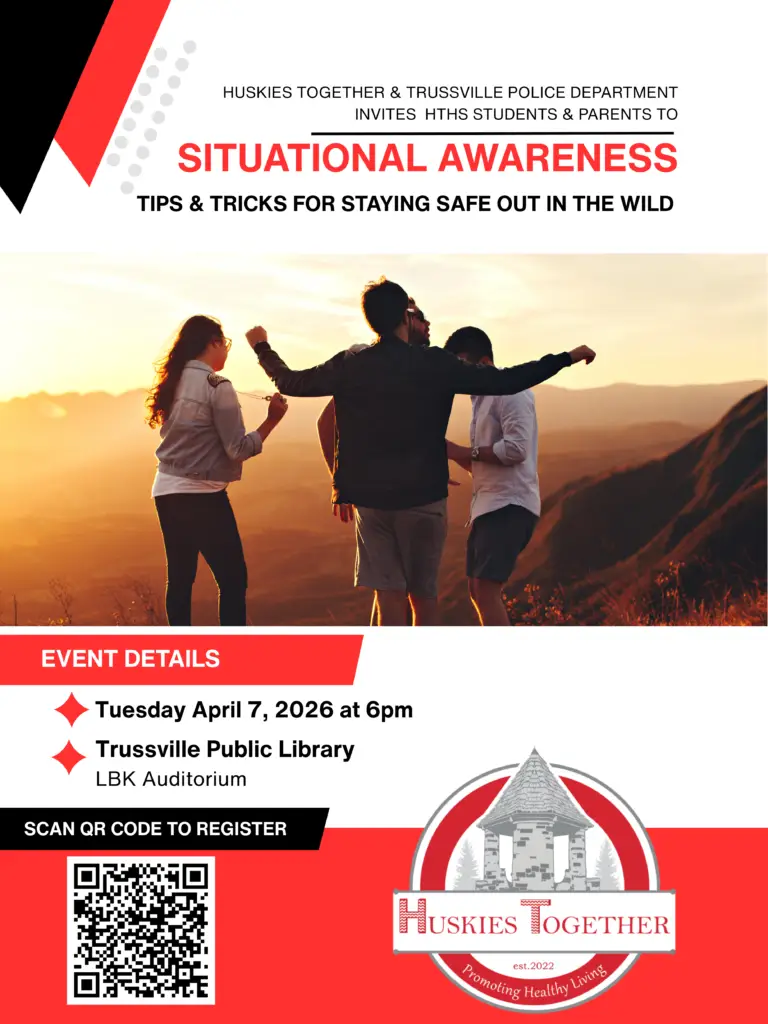 HTHS parents, prepare to join us for our situational awareness event with HTHS SRO Officer Taylor. This informational session will include tips and tricks for keeping your teen safe as they navigate the world on their own. Register Here